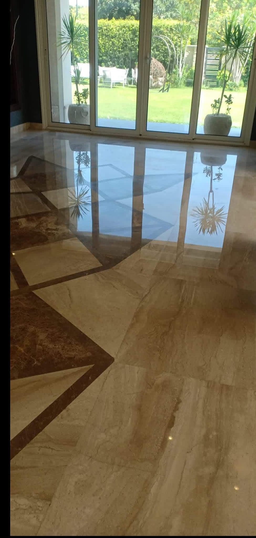 - معاينة نهائية مع العميل لضمان جودة التلميع وتوحيد لون الواجهة أو الأرضية.