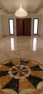 - التلميع النهائي بمادة الكريستال التي تمنح الرخام لمعة مائية براقة.